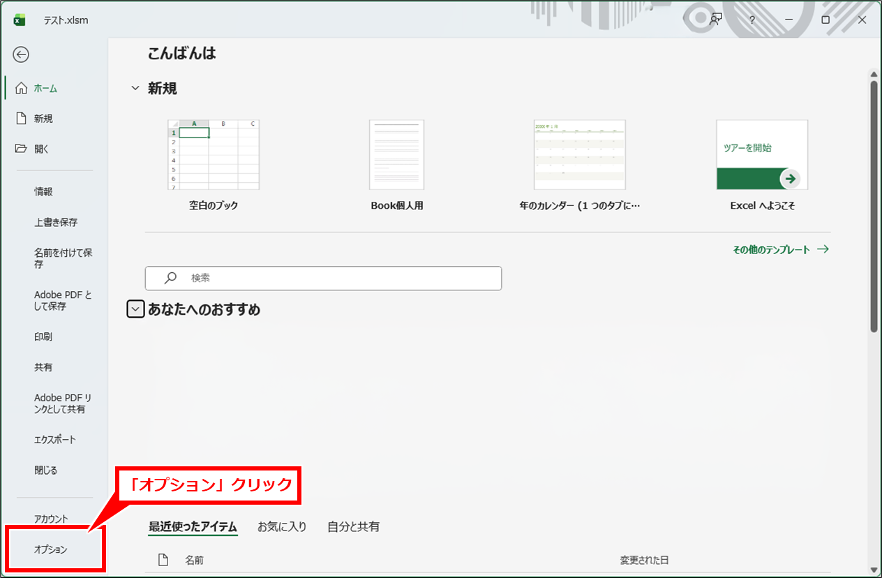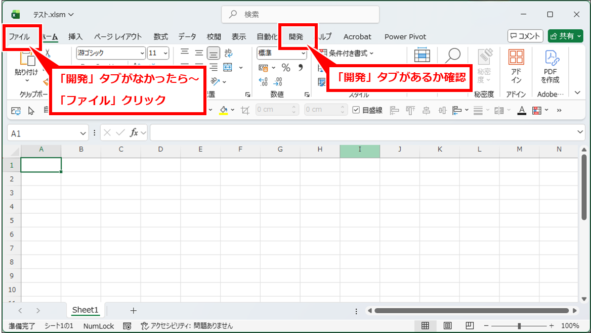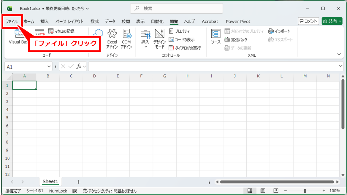 [開発]タブがあるか確認し、なければ[ファイル]クリックして