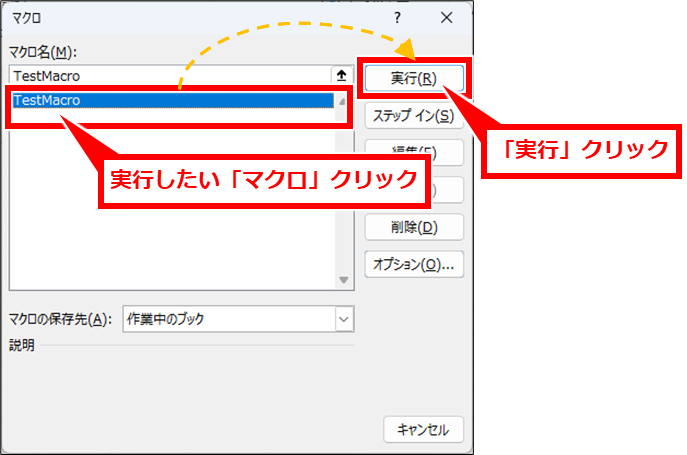 実行したいマクロをクリックし、[実行]クリック](https://itmemo123.net/wp-content/uploads/2025/12/image-10.png)