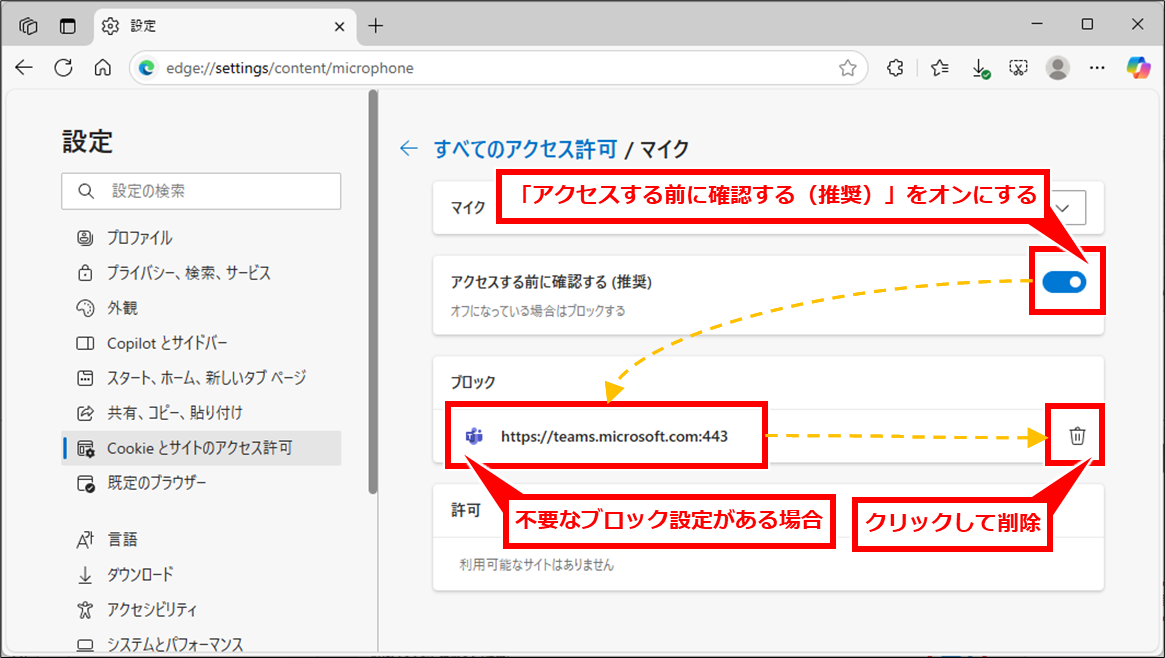 Microsoft Edgeでマイクやカメラが使えなくなった場合の対処方法